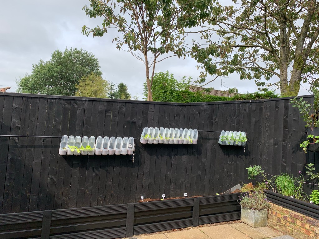 1. Vertical Garden looks visually pleasing (I think) especially on the black fence that holds the heat keeping the cartons warmer for longer.