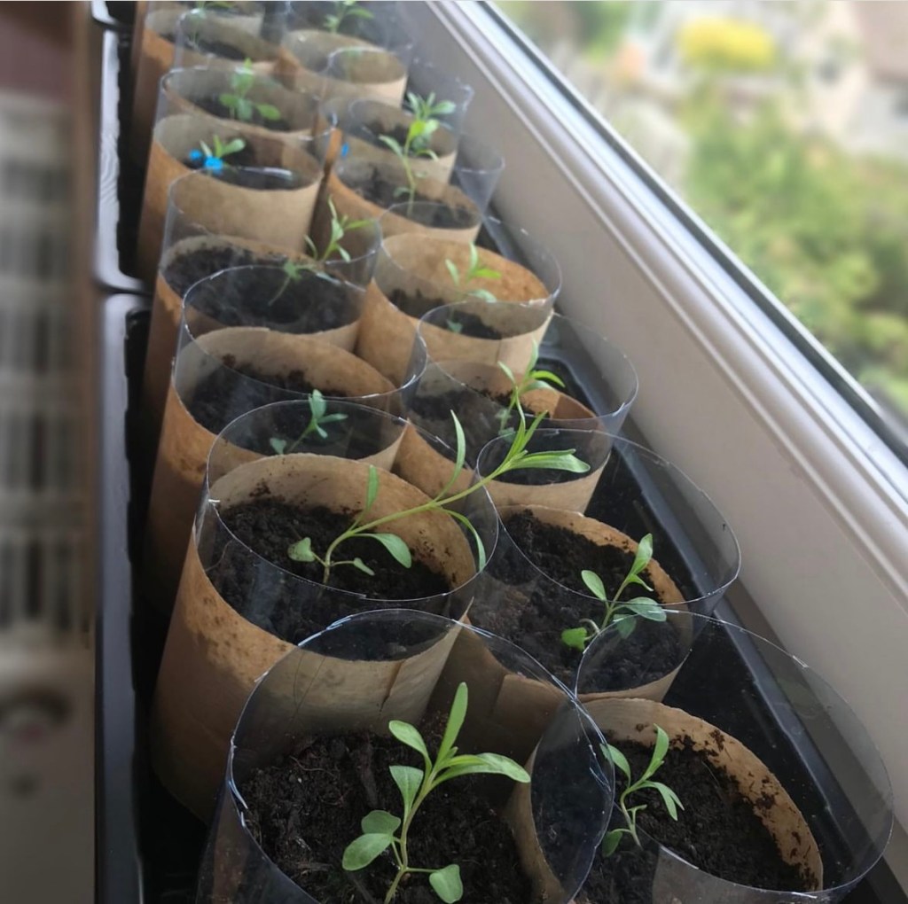 We took the 1ltr flavoured fizzy drink bottles and cut them in half. Added drainage holes by drilling holes in the bottom and wrapping some brown paper around them to protect the roots. These lavender were in here for a good 4mths before planting out.