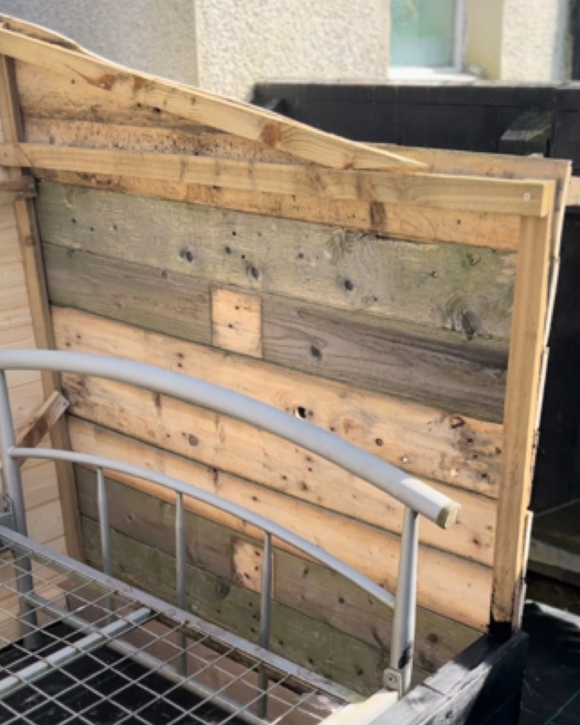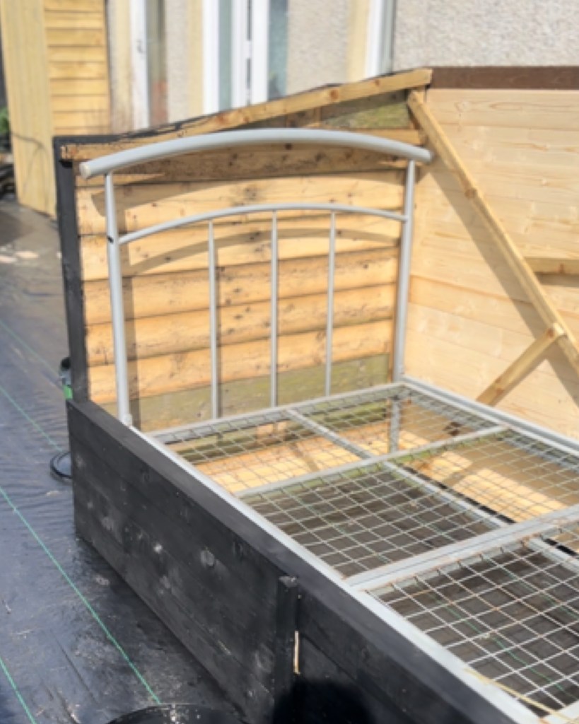 Built a frame around the bed, out of the wood I had available so very mixed, but I knew I was painting it all black anyway so wouldn’t really be noticed.
