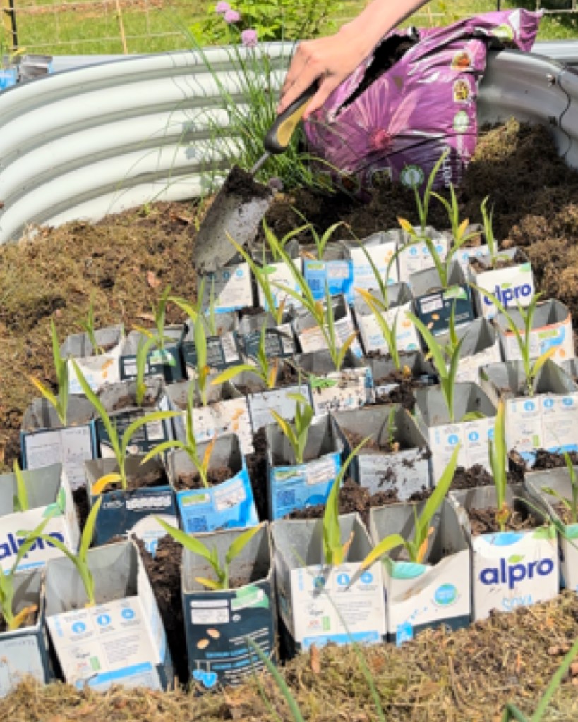 Using milk cartons for sweetcorn is a simple, sustainable method that reduces waste while giving your plants a strong, healthy start.