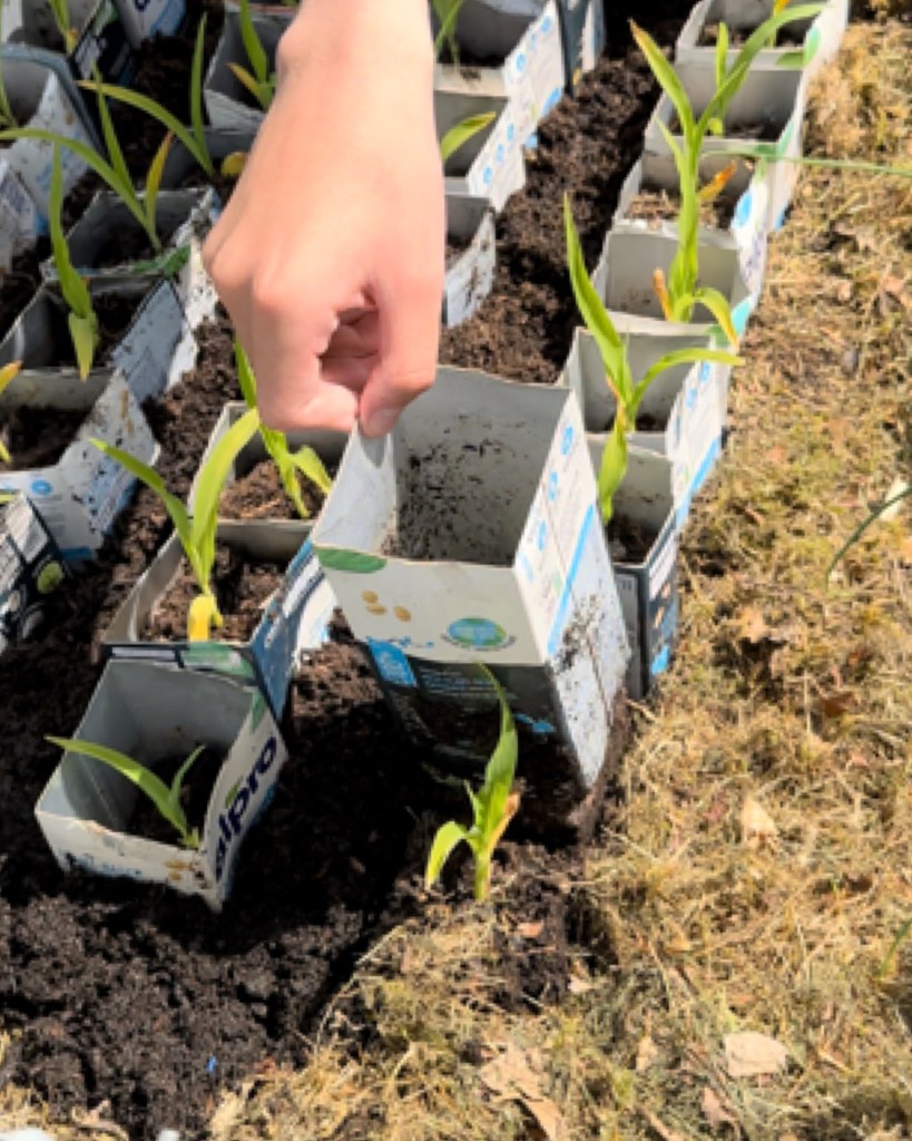 Using Milk Cartons to Grow and Transplant Sweetcorn Without Causing Any Harm To The Roots.