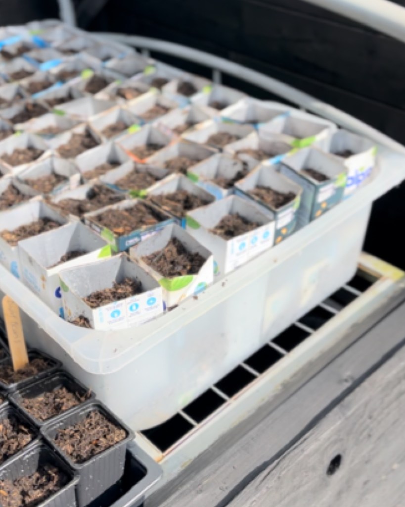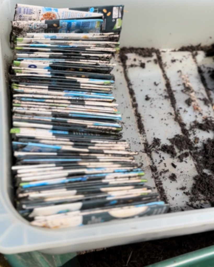 These went straight into the cold frame we built for the seeds to grow this year, previous years we just had them on the window sill in small trays Building A Cold Frame From A Metal Bed, Scrap Wood, Pallets & Shower Curtains