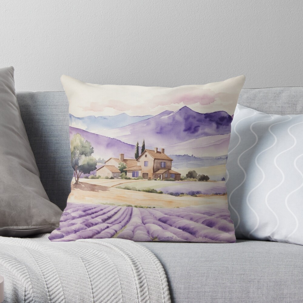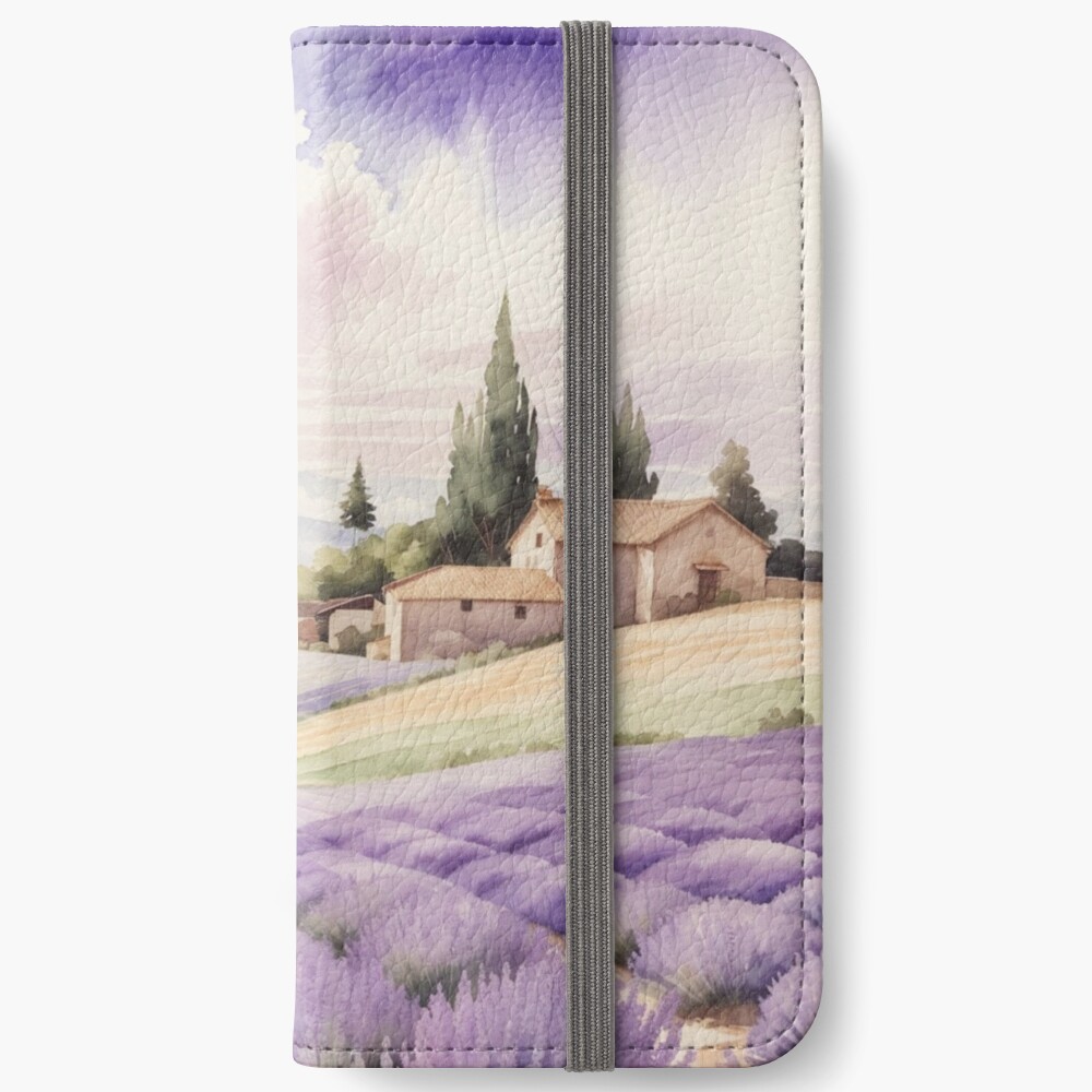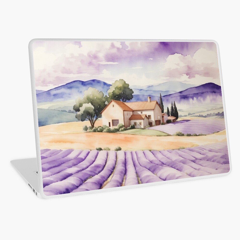 Lavender Fields Collection. Soft watercolour style designs overlooking different angles a lavender fields across the 8 designs on a beautiful evening sunset. purples and soft pinks lighting the sky and clouds. A Beautiful Summers evening.