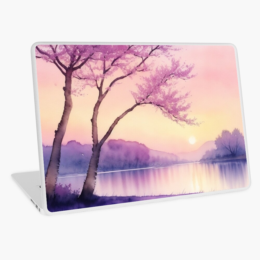 Cherry Blossom Collection. 8 designs of cherry blossom trees over a lake, the purple and soft peaches tones reflecting across the water. all the 8 designs taken at different angles to all complement each other so a ‘set’ becomes a unique collection.