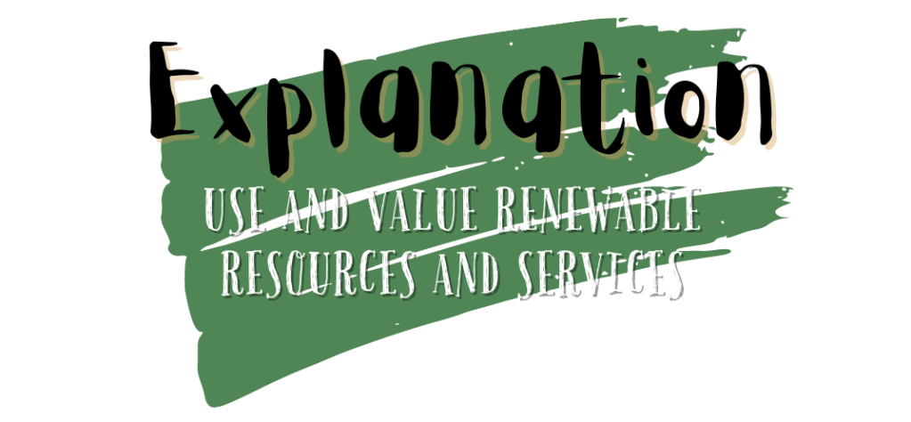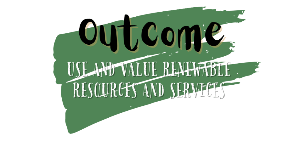 Embracing the use and value of renewable resources and services fosters a culture of respect and reciprocity with the Earth, promoting a deeper connection to and stewardship of the natural world.