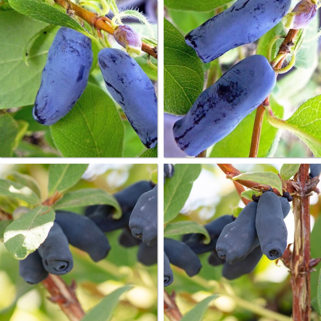 Honeyberries ripen in early summer, typically a few weeks before strawberries. Harvest when the berries are fully colored and slightly soft to the touch. Taste test for sweetness, as some varieties may need to remain on the bush a bit longer to develop their full flavour. Ours are ready early Spring.