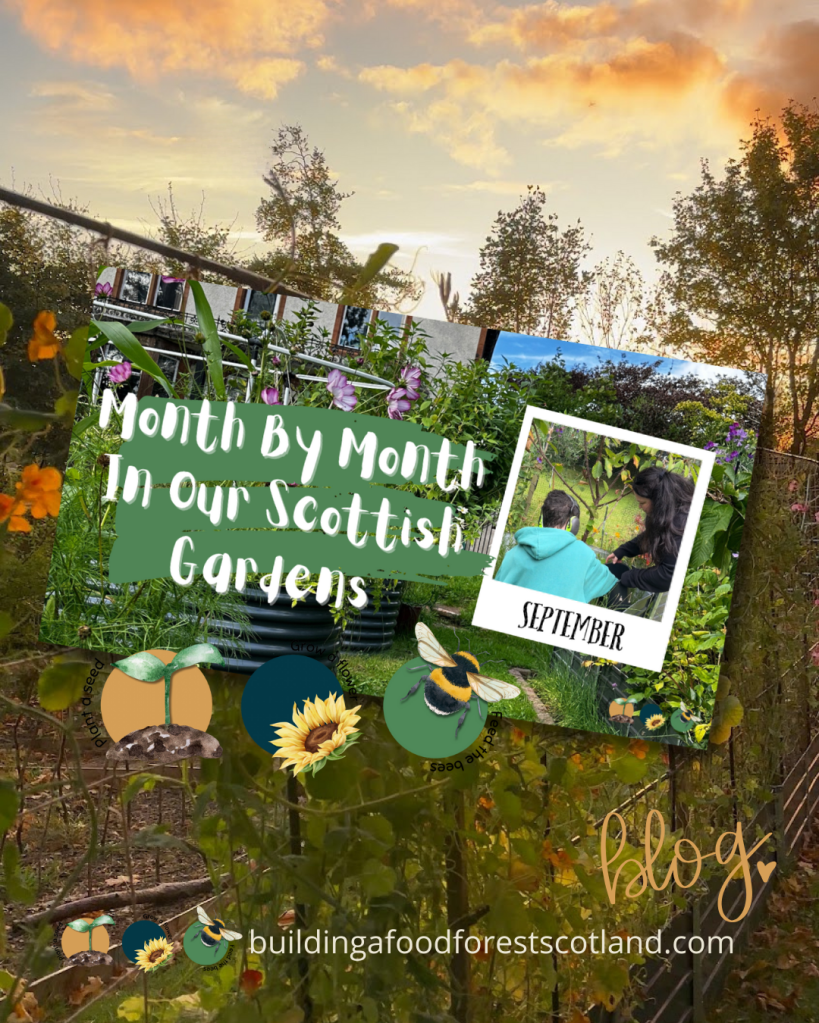The food forest is the heart of our garden and in September it comes into its own. The canopy trees are now settled and productive, offering a sense of permanence and shelter. Beneath them, layers of shrubs, herbs and ground covers weave together into a living system.
