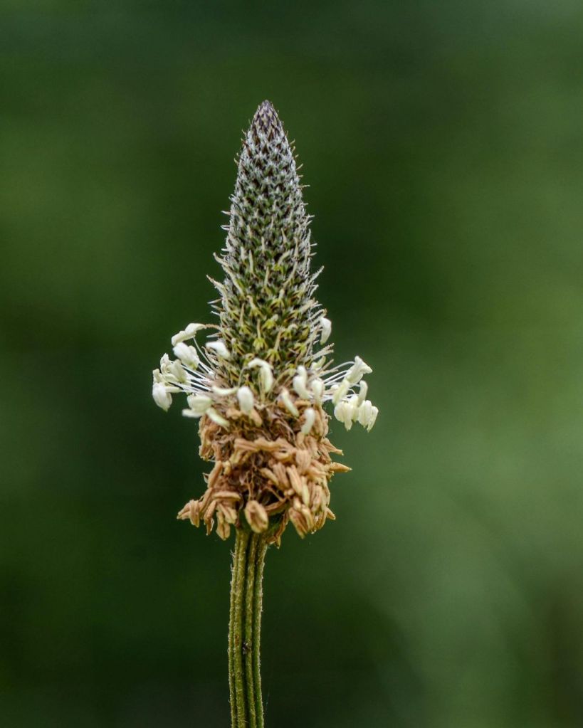 It’s easy to identify by its broad, ribbed leaves and tall, thin flower spikes that rise above the foliage and because it grows flat against the ground, it can survive being walked on, making it one of the most adaptable and persistent plants in the wild.
